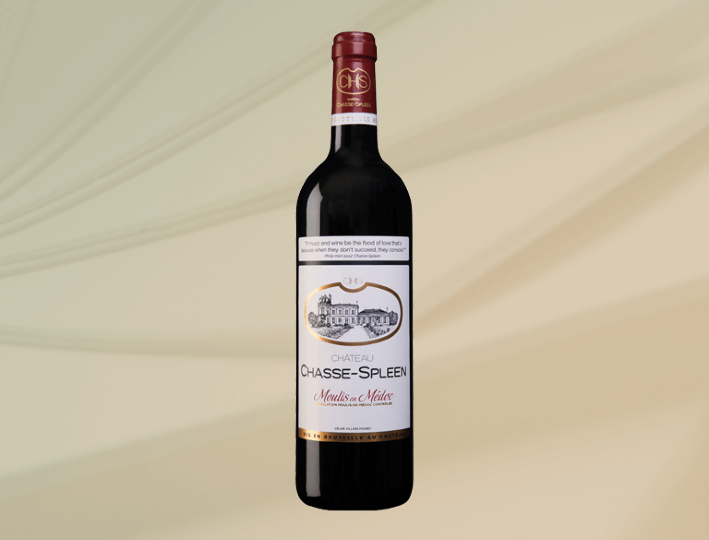 Trop jeune pour être classé en 1855, le Château Chasse Spleen est aujourd’hui la vedette des 9 crus bourgeois exceptionnels. Son nom inusuel et poétique s’accorde parfaitement au style de ses vins qui se distinguent par leur profondeur. Les quatre parcelles de ce grand domaine sont situées à Moulis sur les plus hautes croupes de Grand-Poujeaux entre Margaux et Saint-Julien. Cette situation offre des vins qui dépassent par leur qualité bien des crus classés et qui sont incontestablement au plus haut rang de l’appellation Moulis en Médoc avec le Château Poujeaux.